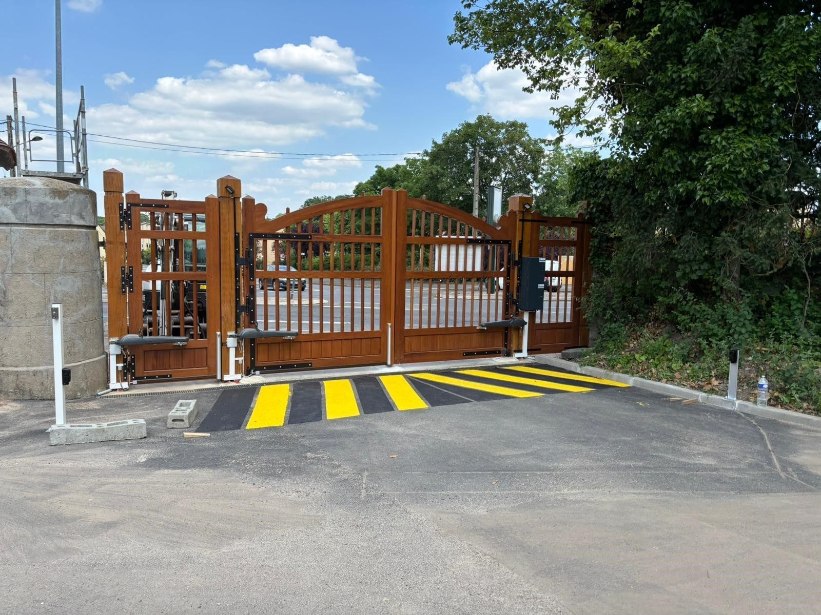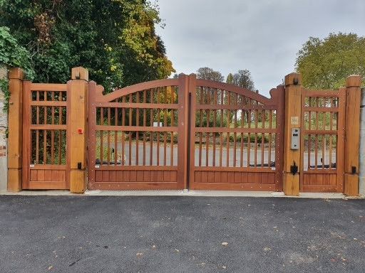 Portail en bois exotique Moabi forme cintre surbaissé à RAMBOUILLET (78) finition lasure chêne